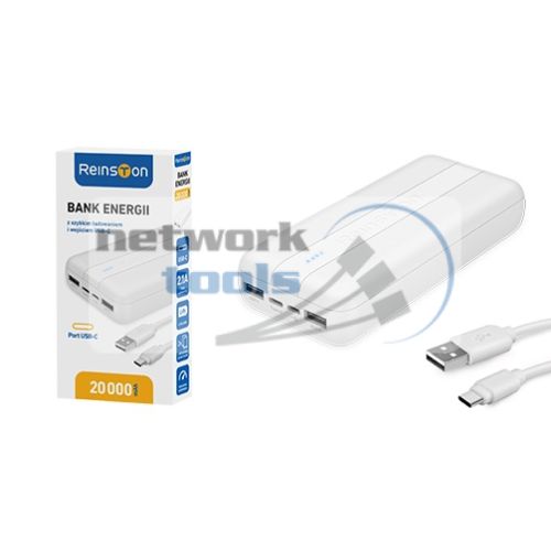 Reinston EPB028 – внешний аккумулятор, power bank, емкостью 20000 мА/ч. Устройство имеет пластиковый корпус белого цвета. Тип аккумулятора Li-Pol (литий-полимерный). Это усовершенствованная версия известного литий-ионного. У него небольшой перепад напряжения во время разрядки. Батарея находится в рабочем состоянии даже, когда ее долго не заряжают. У литий-полимерного аккумулятора чуть больше емкость в сравнении с его прототипом.