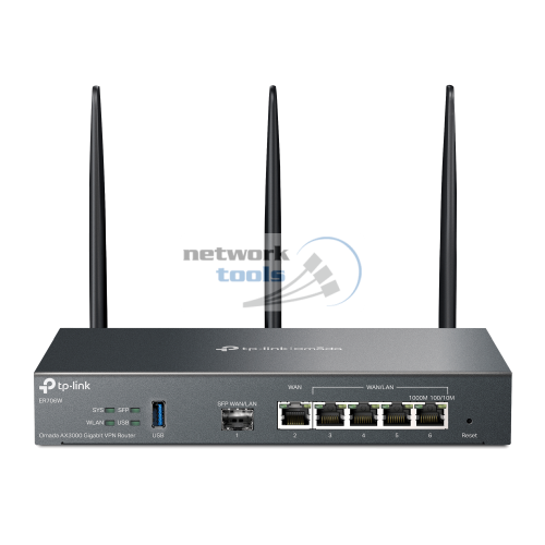 TP-Link ER706W – это современный VPN-маршрутизатор серии Omada, разработанный для удовлетворения потребностей корпоративных сетей. Устройство поддерживает стандарт Wi-Fi 6 (AX3000) и сопутствующие инновационные технологии, включая HE160, OFDMA и 1024-QAM. Благодаря этому модель обеспечивает сверхвысокую скорость передачи данных и стабильность подключения даже в сложных сетевых средах. Скорость Wi-Fi подключения составляет 574 Мбит/с в диапазоне 2,4 ГГц и достигает 2402 Мбит/с в диапазоне 5 ГГц, что делает TP-Link ER706W идеальным выбором для работы с большими объемами данных и высоконагруженными приложениями. Роутер оснащен пятью SFP WAN портами, обеспечивающими многофункциональность и гибкость в создании подключений. За счет функции балансировки нагрузки мульти-WAN маршрутизатор распределяет потоки данных в соответствии с пропускной способностью каждого порта, обеспечивая бесперебойное и быстрое подключение. Это особенно полезно для предприятий, которые нуждаются в высокой надежности сети. Интерфейс USB 3.0 добавляет еще больше гибкости, позволяя подключать модемы 3G или 4G для создания резервного подключения через LTE. Это гарантирует непрерывность работы сети даже при перебоях с основным интернет-соединением.