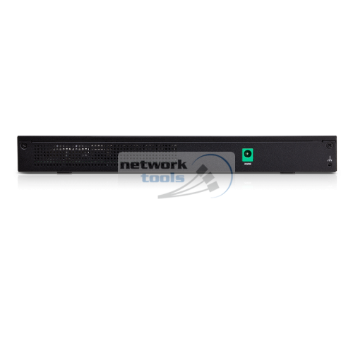 Для получения питания EdgeRouter 12P оснащается адаптером, то есть адаптер присутствует в комплекте поставки. Подключается адаптер к разъёму, что находится сзади корпуса.