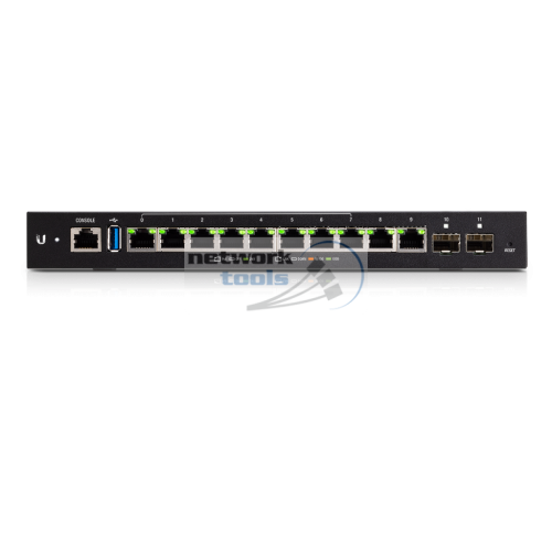 Роутер ER-12P оснащён портами Ethernet в количестве 10 штук и двумя SFP портами. Последние нужны для оптоволоконного подключения. Производитель позаботился о том, чтобы был порт управления и, конечно же, USB. WAN портом может стать любой порт с номером от 1 до 8.