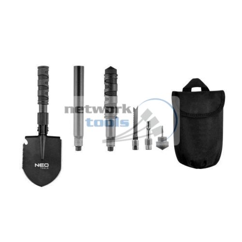 Лопата NEO туристична 63-122, 63см, 8в1, пила, кирка, відкривалка для пляшок, кремінь, багатофункціональний ніж, пробійник, свисток, чохол