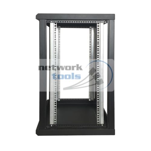 У цю чорну настінну серверну шафу 12U влізуть мережеві пристрої глибиною до 435 мм. Важливим для виробу такого характеру є присутність кабельних вводів у кількості 3 штук. Так виробник розмістив їх на задній стінці та нижній та верхній кришці.