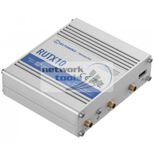 Маршрутизатор RUTX10 обладнаний 4 гігабітними Ethernet-портами. Серед них 3 порти LAN та 1 порт WAN. Також виробник передбачив цифровий вхід і вихід, щоб була можливість налаштувати дистанційне керування та контроль. Крім цього ще є USB 2.0 та Bluetooth LE.