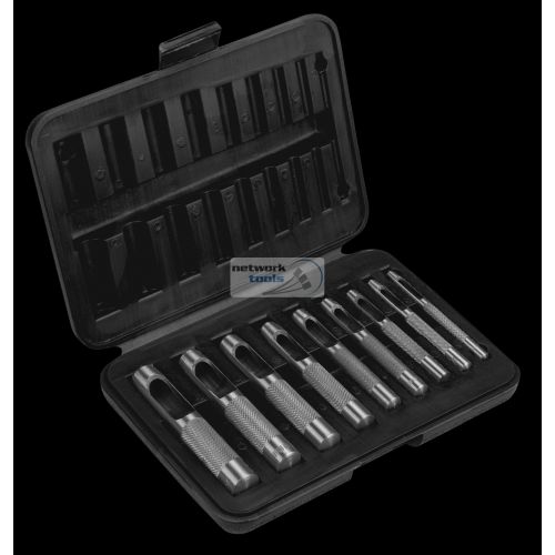 Пробійник круглих отворів TOPEX 03A490, крейцмейсель, набір 9 од., 3-12 мм, довжина 195 мм, кейс