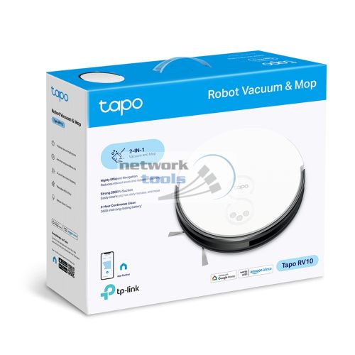 Передбачені різні типи прибирання: сухе та вологе, по суті скомбіновані пилосос та швабра в одному приладі. Це означає, що не становитиме проблем ні видалення пилу, ні усунення плям та інших забруднень. Вода подається на трьох рівнях, щоб можна було вибрати відповідний натиск для будь-яких умов. Робот-пилосос Tapo RV10 оснащений акумулятором ємністю 2600 мАг. Завдяки цьому він здатний працювати безперервно протягом трьох годин без заряджання. Якщо заряд акумулятора добігає кінця, розумний пристрій приїде на базу, а потім повернеться на колишнє місце і продовжить роботу.