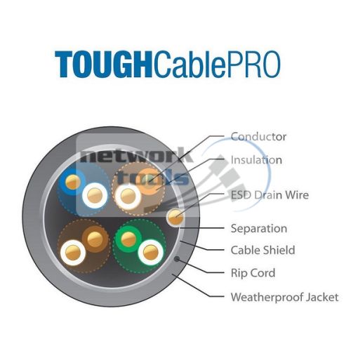 TOUGHCable CARRIER Екранований кабель «операторського класу», категорії 5e, для застосування поза приміщеннями, що має вбудований дренажний провідник електростатичних розрядів, дільник перехресних перешкод і вторинний екран. Забезпечує оптимальну продуктивність гігабітних мереж Ethernet.