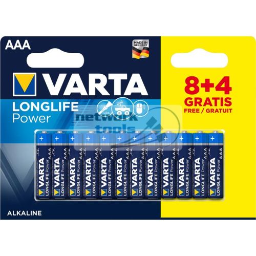 12 батарейок у комплекті Varta Longlife Power AAA BLI 12 (8+4) Alkaline. Високоякісні батарейки 04903121472 та 4008496659203.